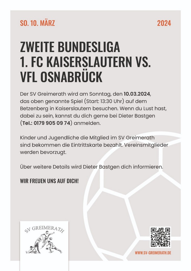 Wenn auch nur als Zuschauer-/innen. So setzte sich ein voll besetzter Bus mit einer großen Fangemeinde von Greimerath Richtung Kaiserslautern in Bewegung, um das dortige Spiel der 2. Fußballbundesliga zwischen dem 1. FC Kaiserslautern und dem 1. FC Heidenheim im Fritz Walter Stadion live mitzuerleben. Nach einem 0:2 Rückstand kam der 1. FCK in der Nachspielzeit zurück und konnte vielleicht auch durch die lautstarken Anfeuerungsrufe der Greimerather Fans noch zum 2:2 Endstand ausgleichen. So traten wir mit guter Laune die Rückreise an und können sagen: Wir waren dabei.
