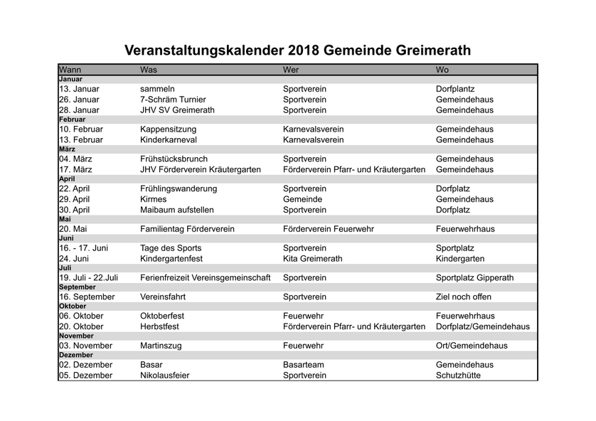 16.06.2017 - 18.06.2017 | Sportfest des SV GREIMERATH | entfällt aufgrund der intensiven Vorbereitungen auf den TV Wandertag am 10.09.2017 |